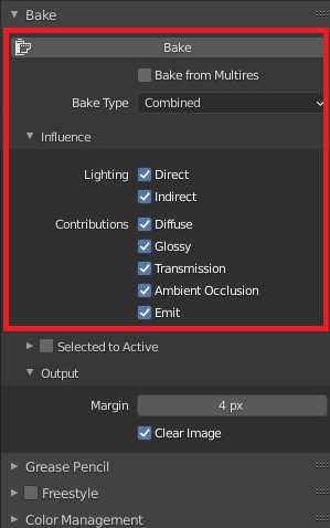 First I had to select the material and then the texture I wanted to render (in this case the “terrain” material with the “T1” texture). I used a combined rendering type because it allows me to do all the lighting calculations (Diffuse, Emit, AO, etc.) on a single texture.