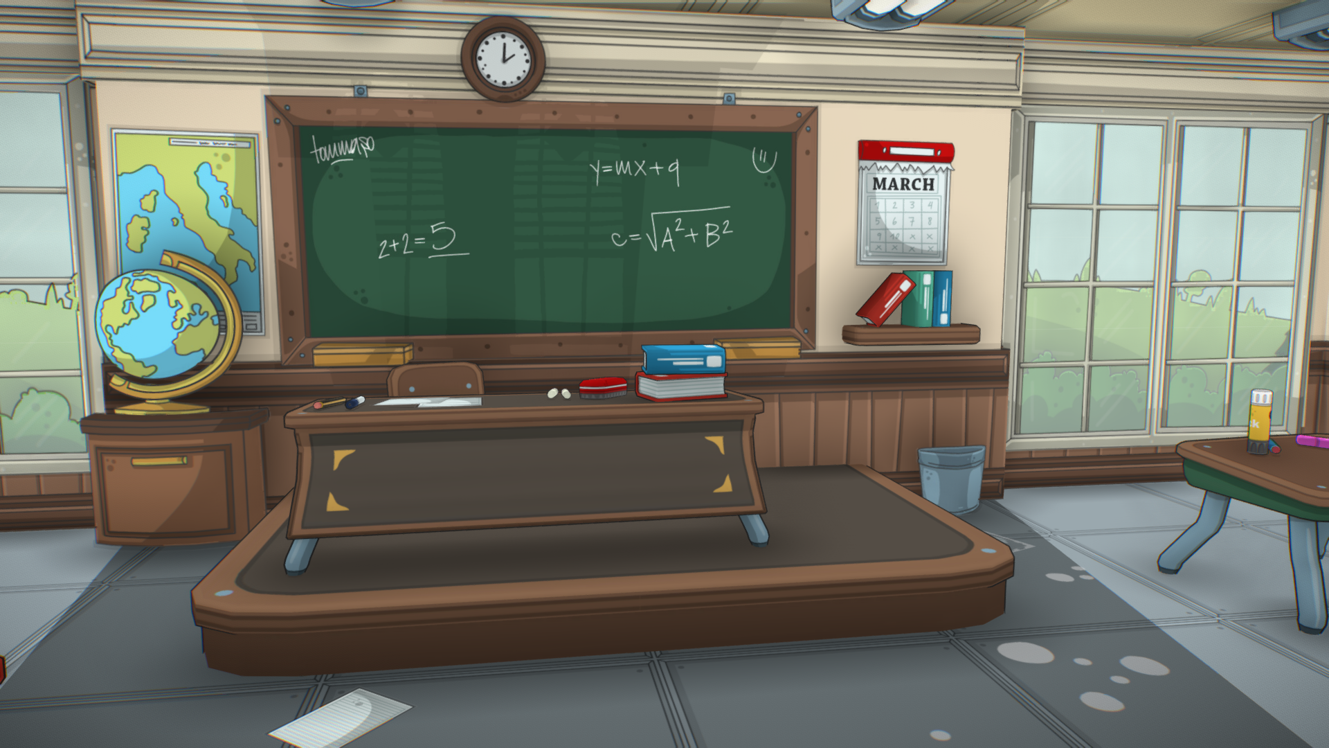This scene is part of a series of environments I have designed for a serious-game. The game, Aksion, was developed for a European research project, and its focus is children’s education using an interactive and fun experience. The target is autistic children, and the game wants to teach them how to behave in and react to uncomfortable situations, using minigames that reflect real life situations.