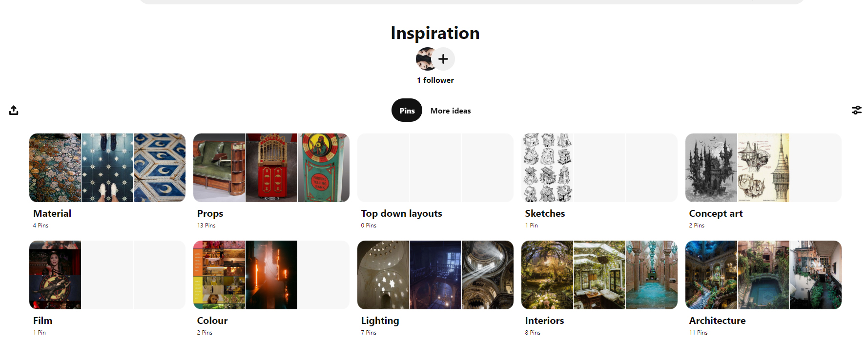 When I am deciding what I want to create, I always go to ArtStation or Sketchfab to make sure that there isn’t already a whole load of that object or environment. I want to create things that are both interesting to me and haven’t already been seen a hundred times. I also like to browse Pinterest and save anything I find interesting to my Inspiration board, which I have broken up into categories.
