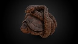 Netsuke - Snake curled around a turtle